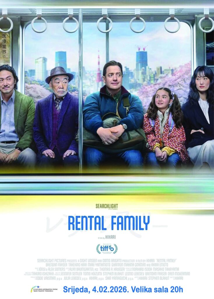 Duhovita drama „Porodica po ugovoru/Rental Family“ (2025) japanske rediteljke i glumice Hikari, biće prikazana u okviru revije „Ljubav na filmu” IX u srijedu, 4. februara, u digitalizovanoj bioskopskoj sali KIC-a „Budo Tomović”, u 20 sati. Film je zasnovan na jedinstvenoj socijalnoj pojavi koja zaista postoji u Japanu, a riječ je o agenciji koja unajmljuje ljude […]