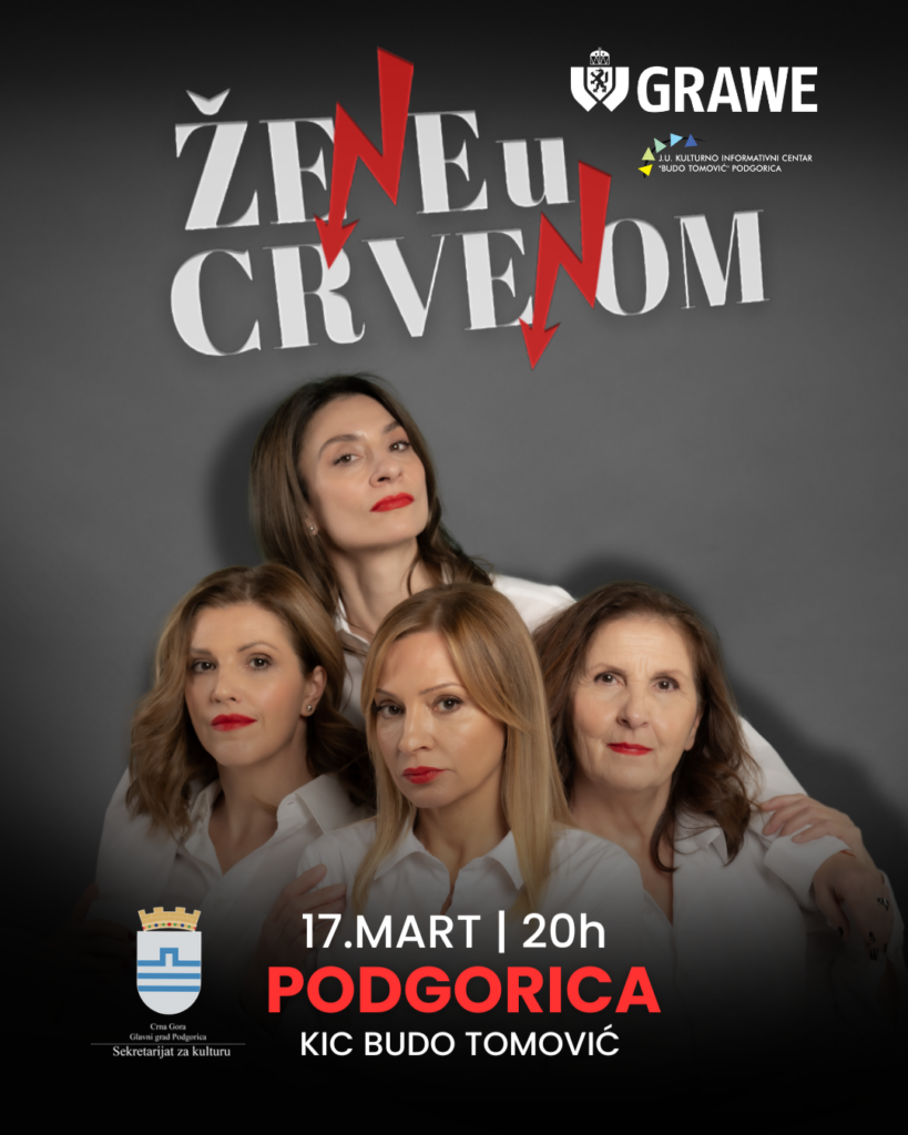 Predstava „Žene u crvenom“, po tekstu Davora Špišića u režiji Bojane Lazić, biće izvedena u utorak, 17. marta, u 20 časova, u Velikoj sali KIC-a “Budo Tomović”. Sekretarijat za kulturu Glavnog grada Podgorica poklanja sugrađankama snažnu i duhovitu pozorišnu priču, komediju, koja prati četiri žene, suočene sa surovom i apsurdnom stvarnošću i na ivici egzistencije. […]