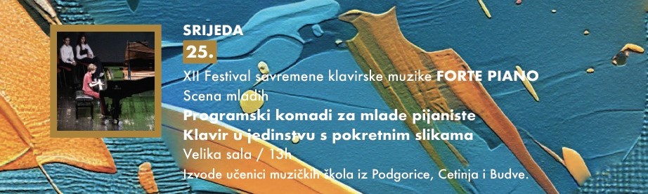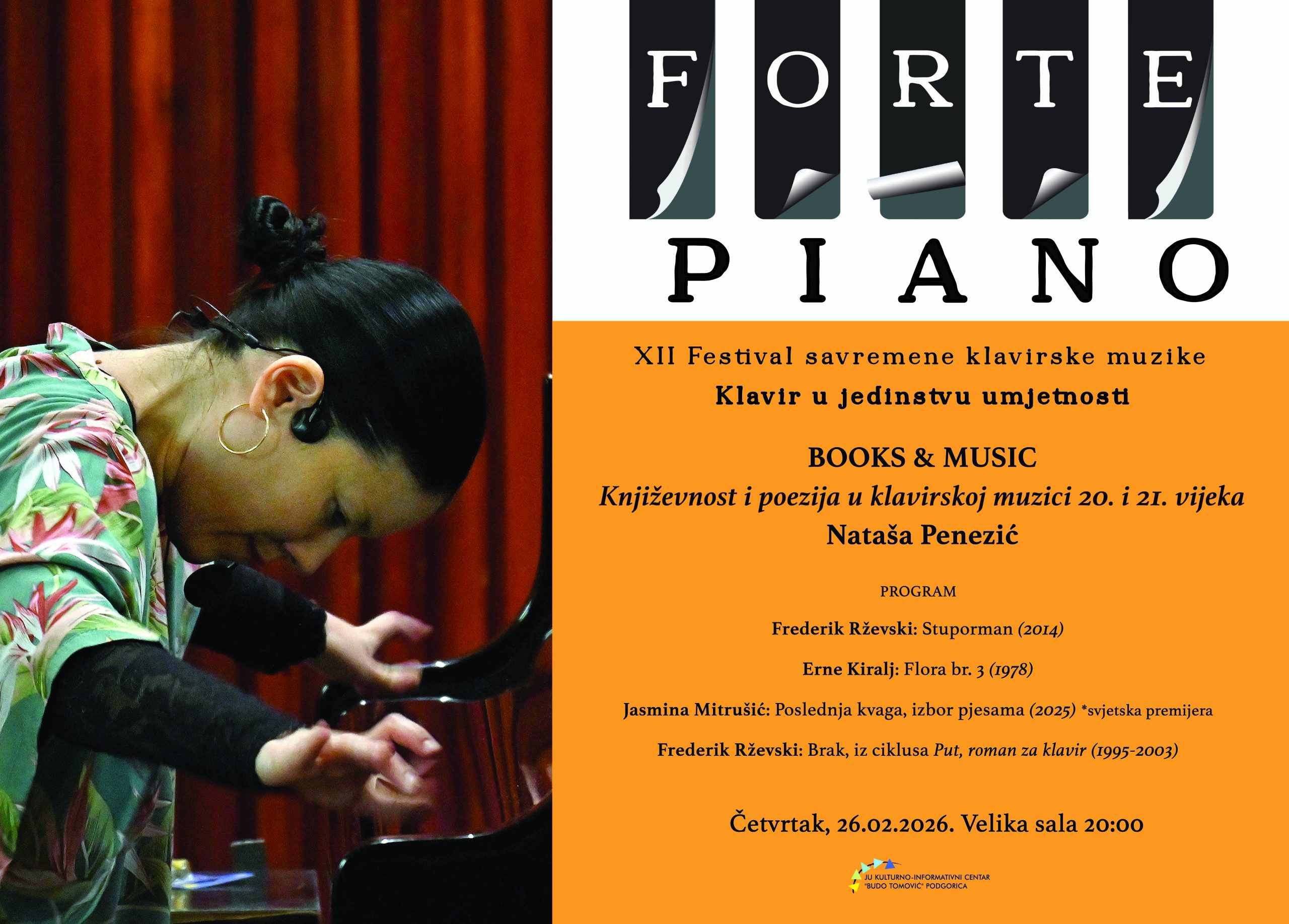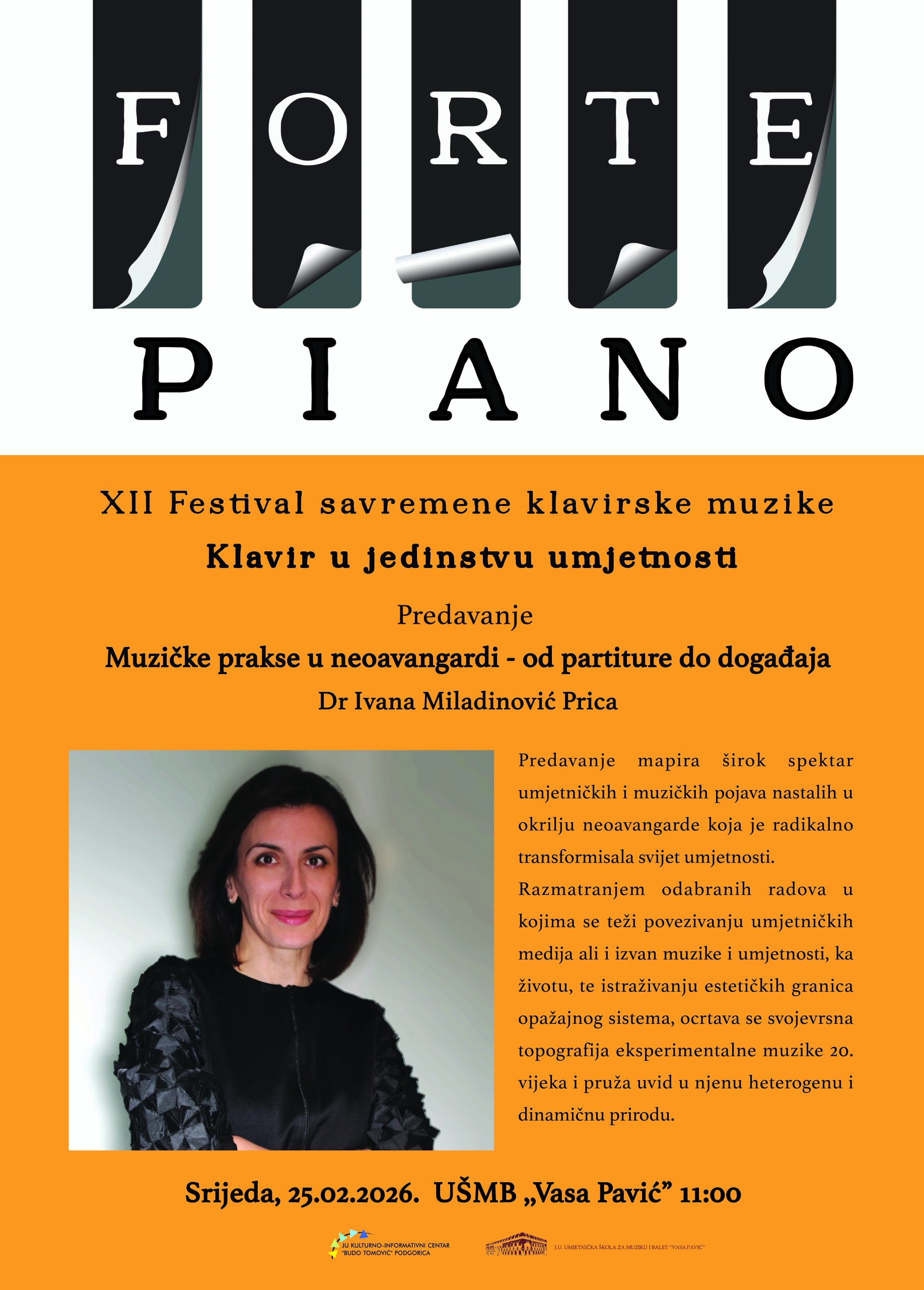UŠMB „Vasa Pavić” Vaka Djurovića, Podgorica, MontenegroU okviru redovno muzičkog programa organizujemo XII Festival savremene klavirske muzike „Forte piano” pod motom „Klavir u jedinstvu umjetnosti”. Festival će 25. februara biti otvoren predavanjem muzikološkinje Ivane Miladinović Price […]
