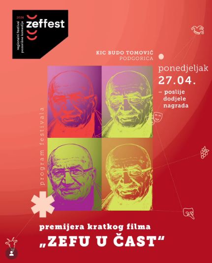 ZEFFEST - Regionalni festival pozorišne komedije održaće se u periodu od 23. do 27.aprila u KIC Budo Tomović Zvanični program Prvog regionalogi festivala pozorišne komedije ZEFFEST je tu. Festival je osnovan u čast velikanu crnogorskog glumišta Zefu Batu Dedivanoviću i u okviru festivala premijerno će biti emitovan kratki film ,,Zefu u čast". Festival organizuju Media […]