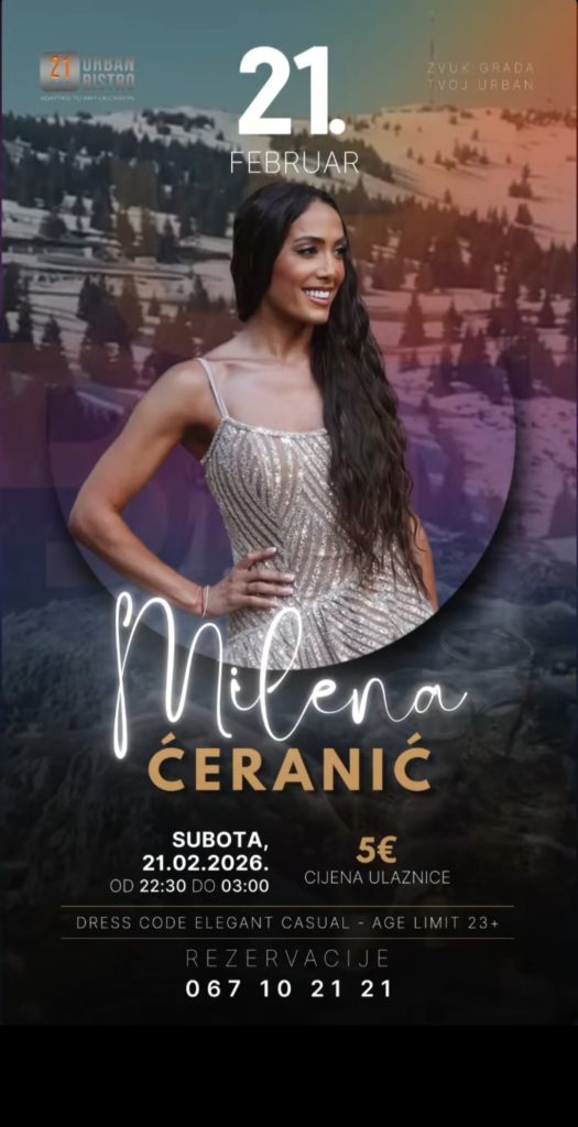 Zvuk grada – Vaš Urban! 👉 U subotu, 21. februara, nastupa Milena Ćeranić! 🎟️ Cijena ulaznice 5€! 📌 Dress code: Elegant Casual 🔞 Ulaz 23+ 📲 Rezervacije: 067 10 21 21 Urban – mjesto gdje grad diše muzikom. ✨