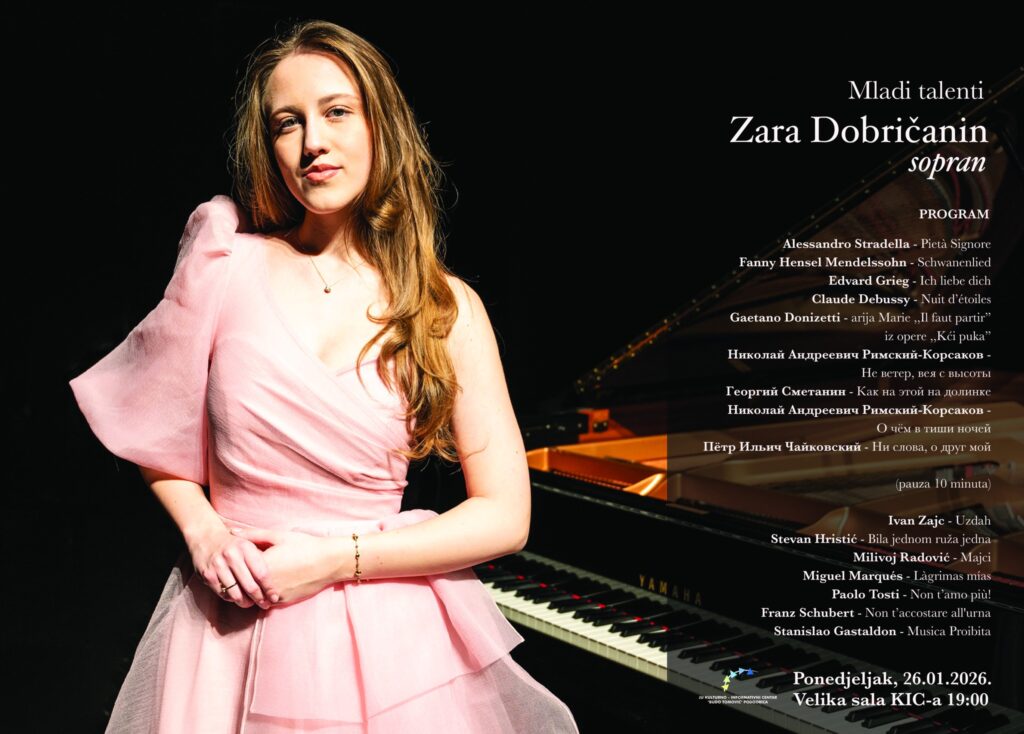 Kulturno-informativni centar „Budo Tomović” otvara muzički program u 2026. godini koncertom u okviru ciklusa „Mladi talenti”, posvećenog afirmaciji perspektivnih mladih muzičara. Sa zadovoljstvom najavljujemo prvi solistički nastup soprana Zare Dobričanin, […]