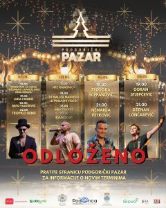 Usljed najavljenih nepovoljnih vremenskih uslova, program Podgoričkog pazara se odlaže. Za informacije o novim terminima programa, pratite stranice Podgorički pazar i sajt Turisičke organizacije Podgorice. Turistička organizacija Podgorice
