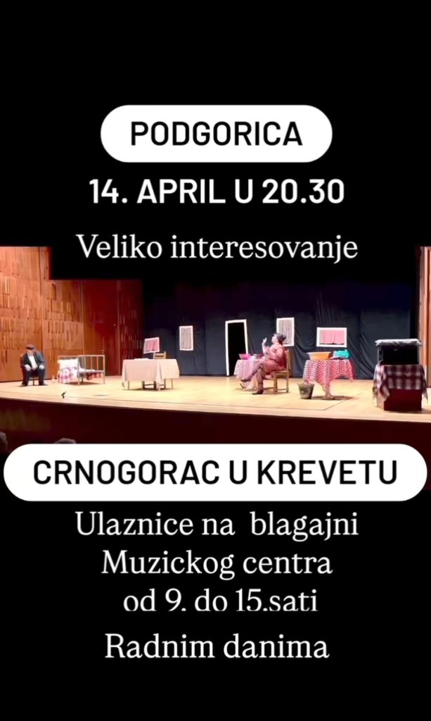The play “Crnogorac u krevetu” will be performed for the Podgorica audience on April 14th at the Montenegrin Music Centre🎭